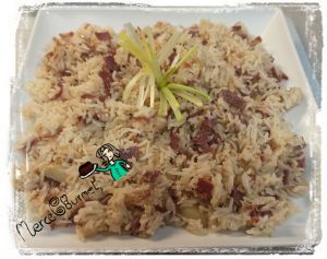 4. Incorpora el arroz cocido al sofrito y remueve bien.