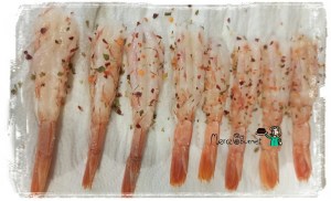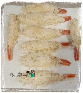 1. Preparar las gambas. Pela las gambas dejando el extremo de la cola. Haz un pequeño corte longitudinal en la parte interior para que queden rectas y retira la tripa si la tienen. Sécalas muy bien con papel de cocina; este paso es clave para que el rebozado se adhiera correctamente.