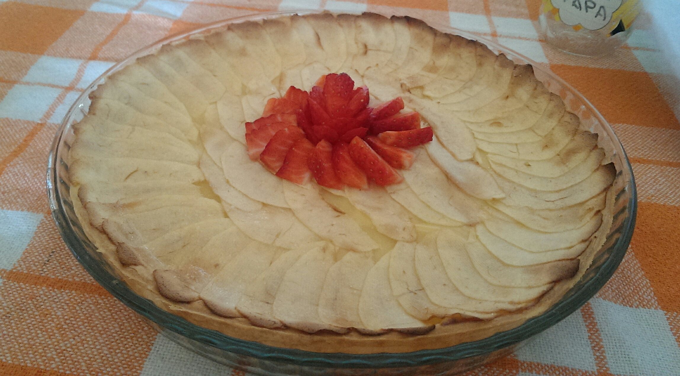 Pelamos las manzanas y las descorazonamos (Les sacamos el centro) Las cortamos a láminas lo más finas posible y decoramos como más nos guste cubriendo toda la crema con ellas
