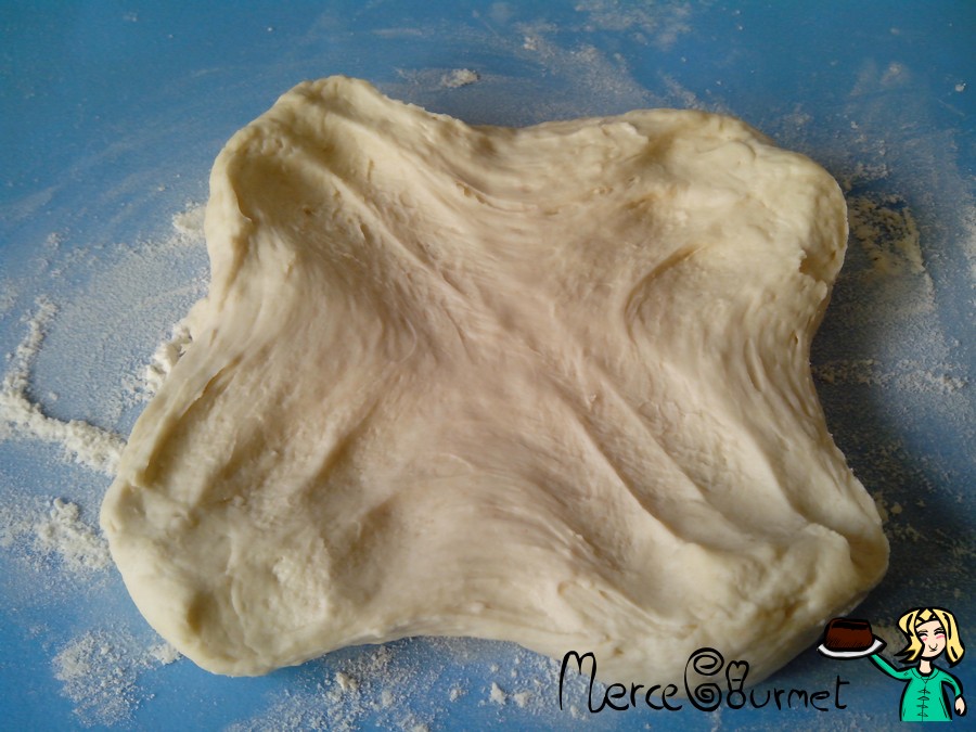 a continuación con el rodillo, abriremos en cruz los extremos…