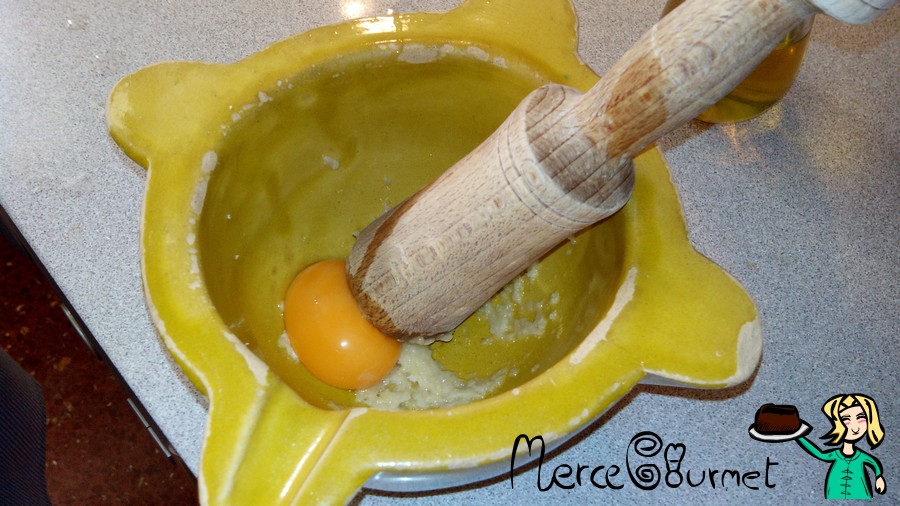 Necesitaremos un mortero preferiblemente de mármol y un mazo de madera. Introduciremos un pellizco de sal. Pelamos el/los ajos, introducimos en el mortero y machacamos hasta conseguir una pasta homogénea…
