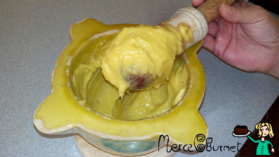 y empezaremos a remover la mezcla, añadiendo lentamente un hilo de aceite de oliva, siempre sin dejar de remover y en el mismo sentido…