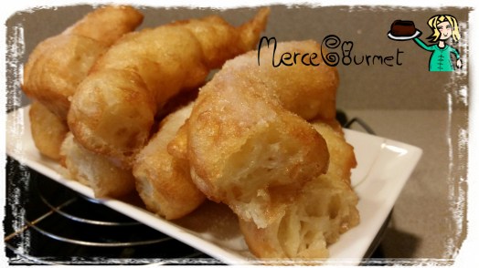 - Con ayuda de la manga pastelera, iremos haciendo como un circulo con la masa y esperaremos a que se nos dore. Con ayuda de unas pinzas, les daremos la vuelta y cuando estén dorados por las dos partes, las sacaremos, las pondremos sobre papel absorbente y las espolvorearemos con azúcar. Las cortaremos a tamaño deseado. Ya tenemos nuestras porras hechas.