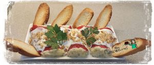 2. Hacer el relleno: Pica el ajo y el perejil finamente. Corta el jamón en trozos pequeños. Mezcla todo con la pulpa del tomate. Sofreír ligeramente.