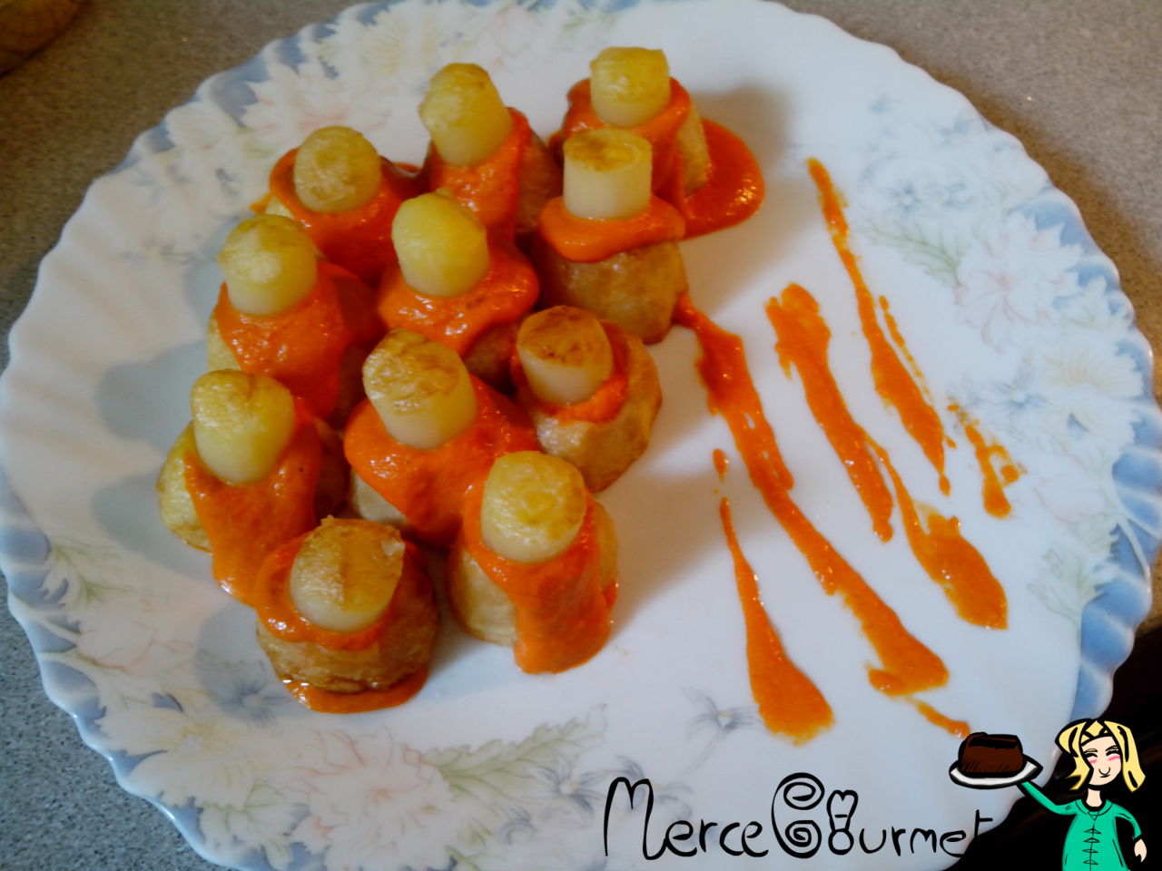 Lavamos muy bien las patatas. Las ponemos en una olla con agua (que las cubra) y sal de 10 a 15 minutos, sin dejar que lleguen a ebullicion. Cuando haya transcurrido ese periodo de tiempo, las escurriremos y dejaremos que se enfríen un poco para poder pelarlas sin quemarnos.